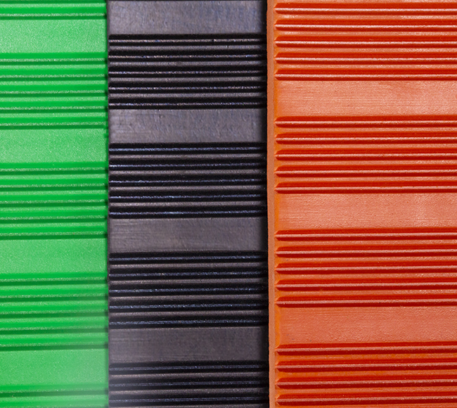溝板表面是防滑粗細條紋,具有防滑、耐磨、耐老化、抗壓和防水等性能,被廣泛應用于走廊、門廳、地面、運動場所、裝卸場所、門墊和客車墊等。